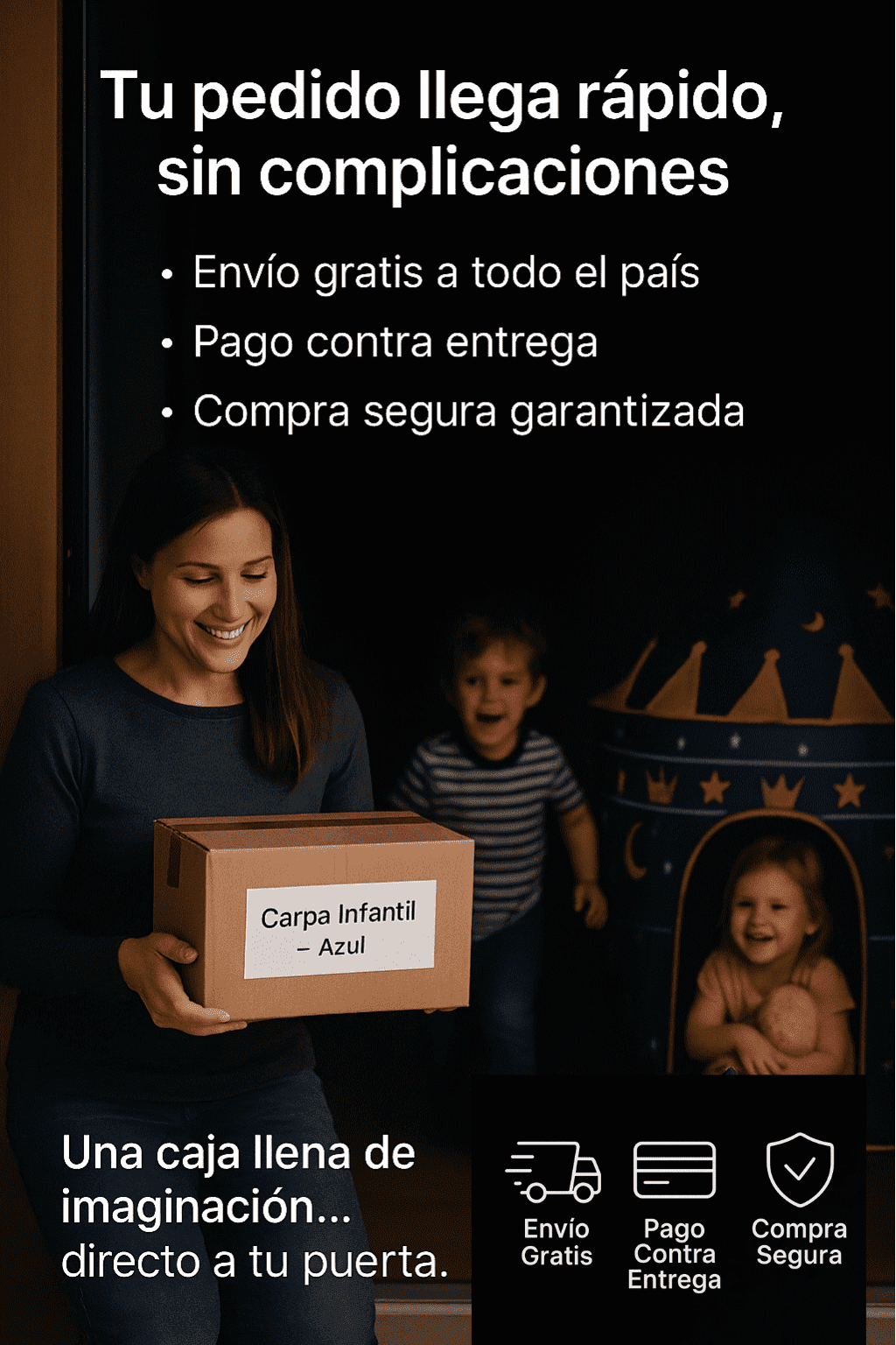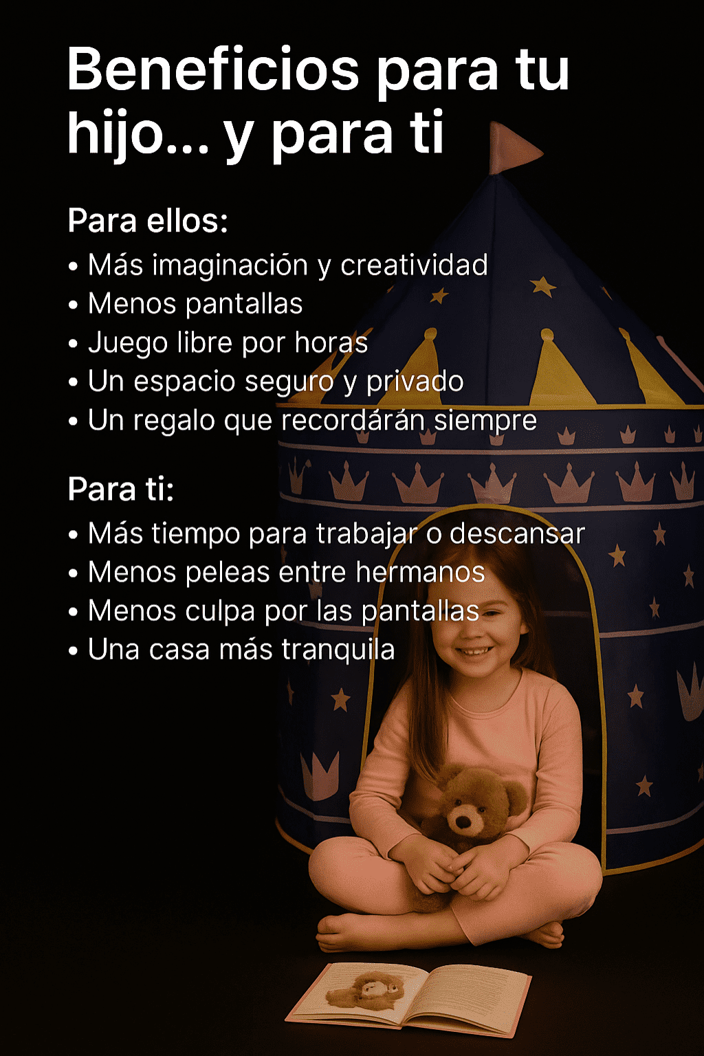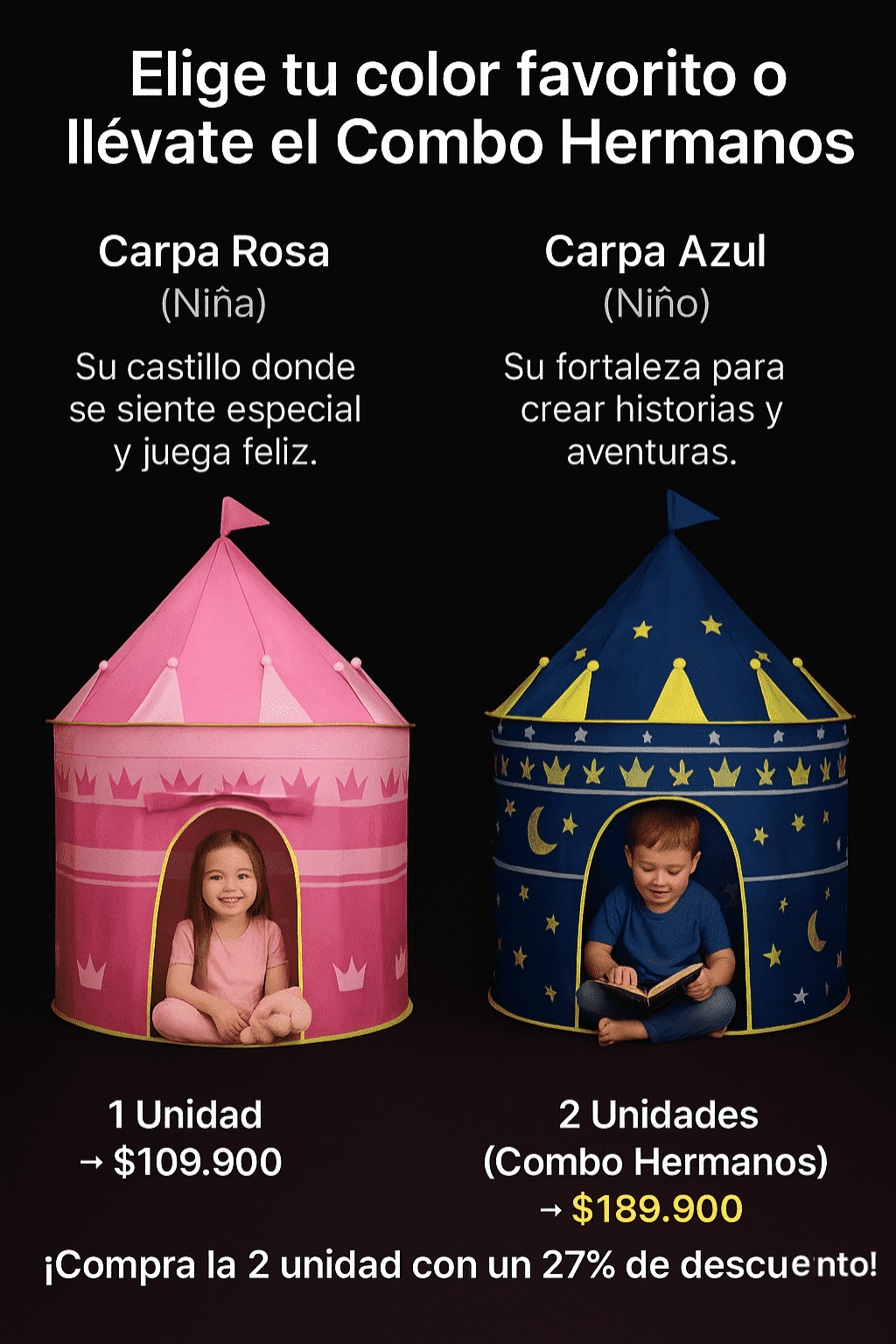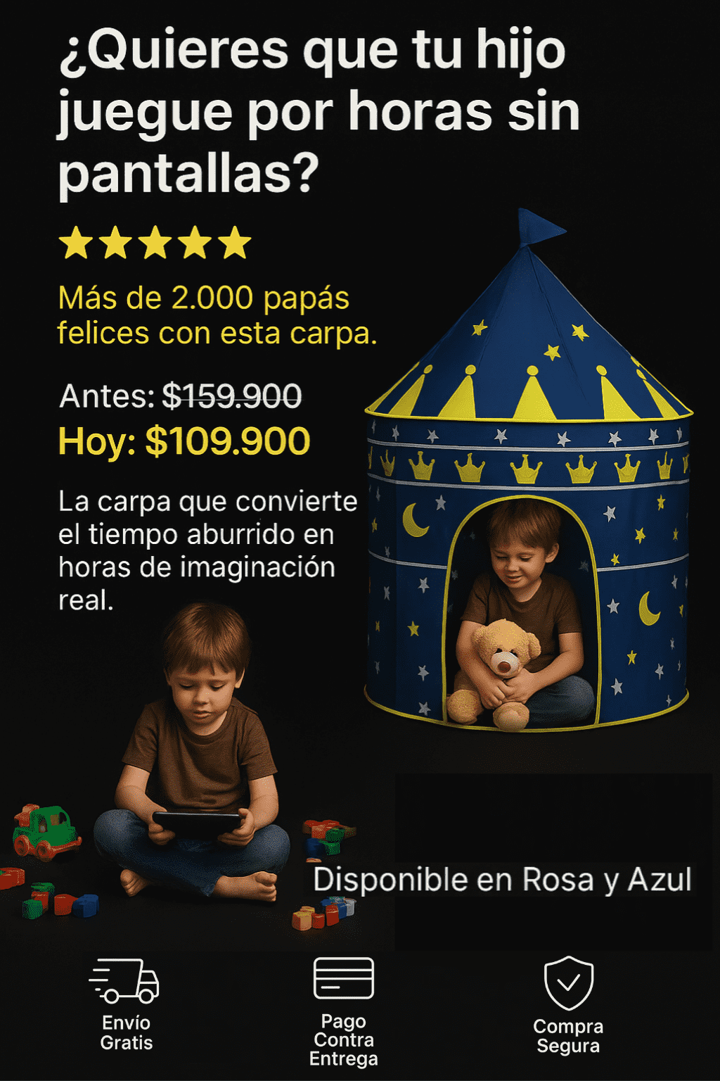 Mi hijo ahora pasa horas jugando dentro de su castillo azul. Antes estaba pegado al celular y ahora volvió a usar la imaginación. Excelente calidad.