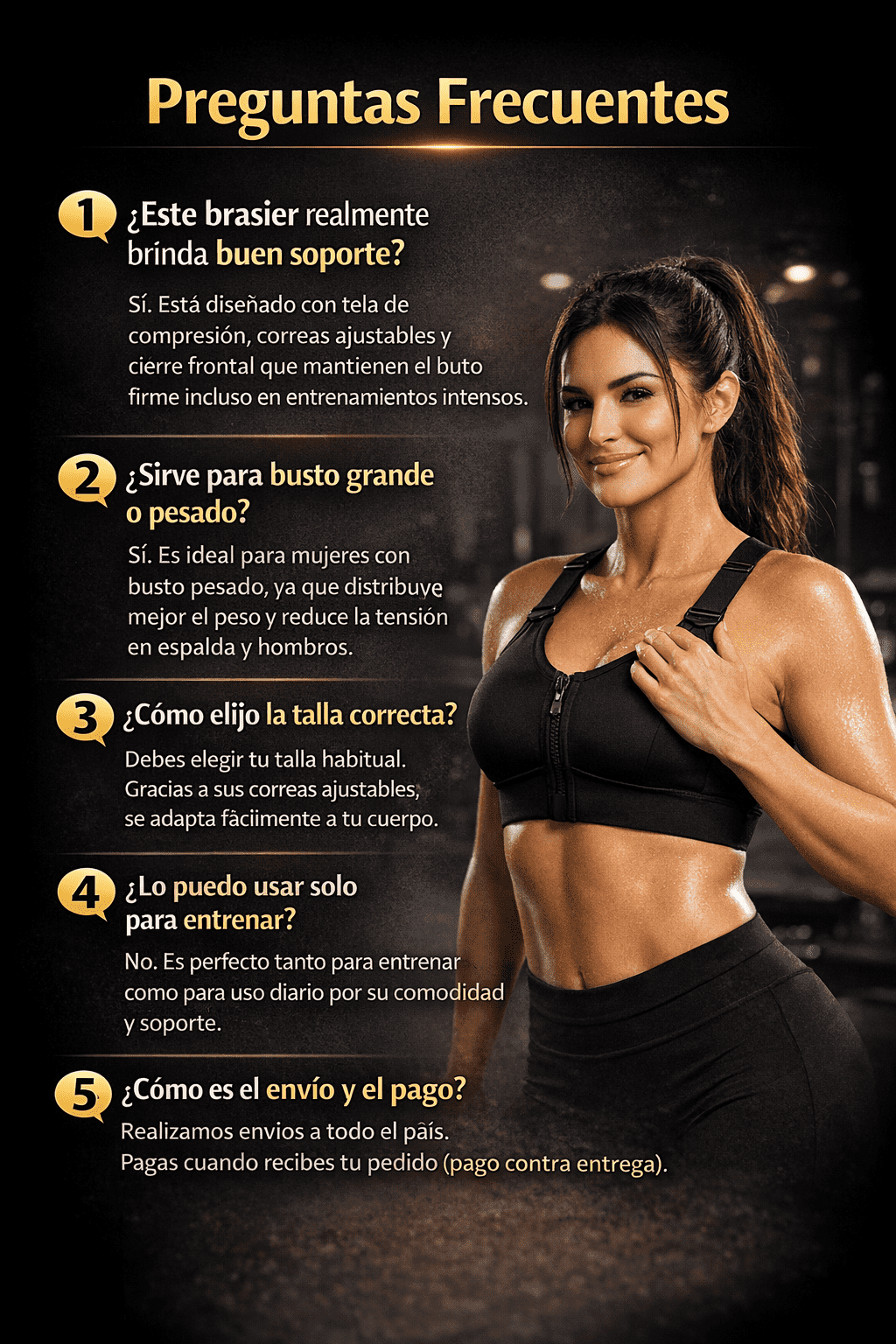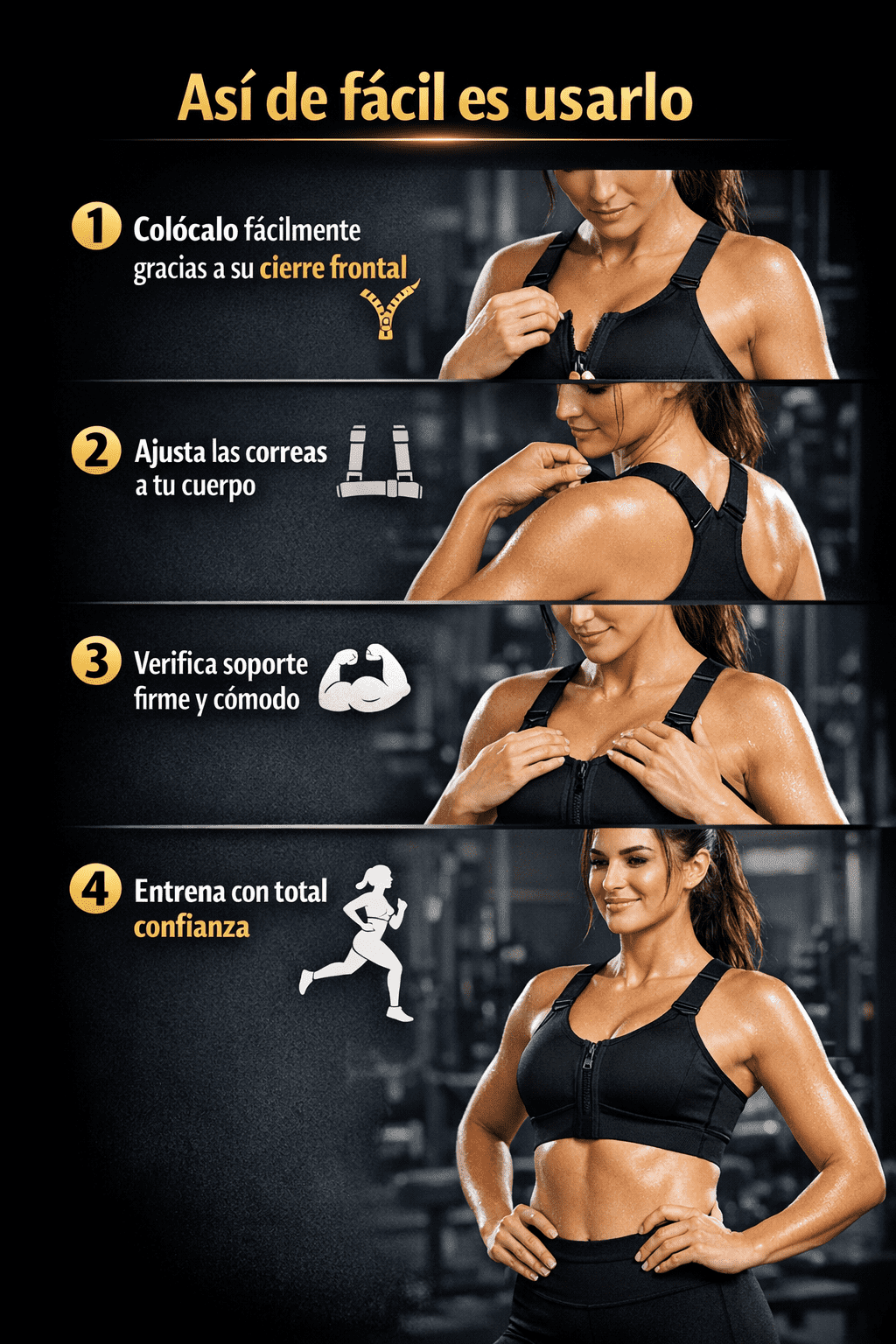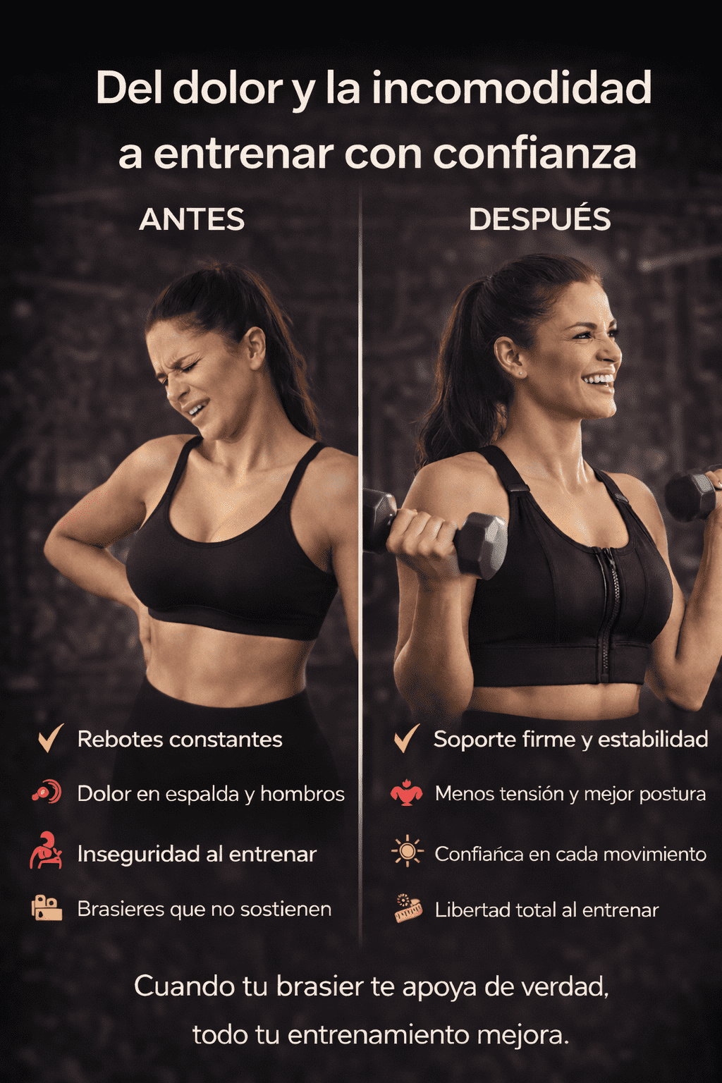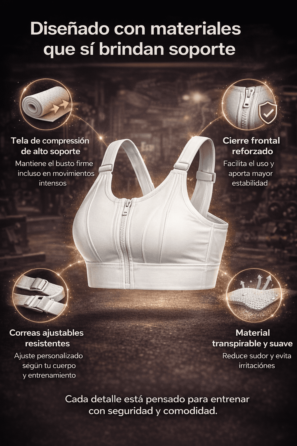 Gracias a sus correas ajustables, el brasier se adapta fácilmente a tu cuerpo.